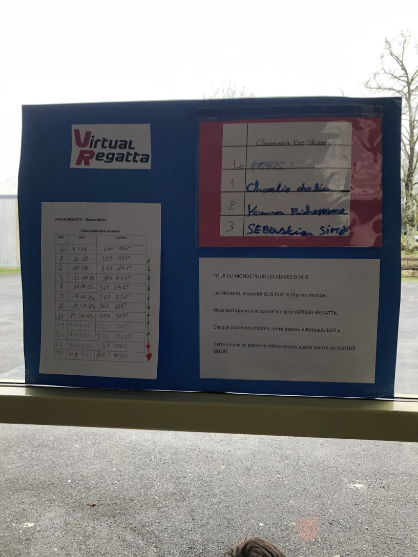 Cette année, a lieu la course à la voile : le vendée Globe. Cette course a lieu tous les 4 ans. Les élèves d’ULIS on décidé d’y participer sur un voilier virtuel. Il court avec les véritables marins, mais le bateau est virtuel. La course se déroule dans les mêmes conditions météorologiques qu’en réalité : le logiciel indique les vents et trajectoires en temps réel. Différentes catégories de personnes participent à la course réelle : Handicapé, femme, Homme, âgé ou jeune.