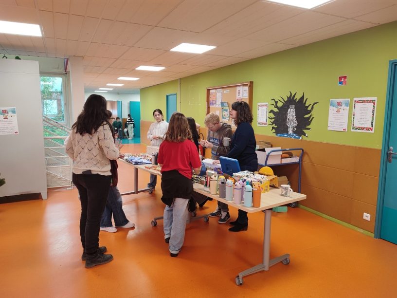 Nous vous présentons le marché de Noël, disponible de 13h15 jusqu’à 13h50. Il y a des trousses kawaii, stylos Nimos, mini gommes, bougies, bougies mug, bouillottes, tote bags, lunch bags, porte-clés bubble tea, accessoires de Noël, bagues mood et des stylos. Le marché se tient dans le hall du collège. Il est présent du Lundi 8 Décembre jusqu’au Vendredi 19 Décembre. Il est organisé per le FSE. Venez nombreux !
